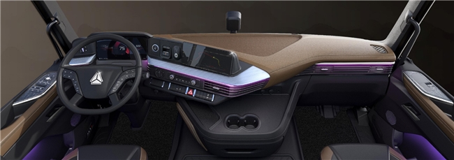 豪沃TS燃气牵引车读懂卡友的每一份不易,以初心破痛点,凭实力护征程,用人机优化、超大落地窗、主视镜下置三大贴心设计,打造国道运输视野最佳重卡。驾驶员前保险杠清晰入目,右前轮钢圈一目了然,前下盲区从3.6m大幅缩减至2.9m,用广阔视野为安全护航,让每一次转弯、每一次会车都更安心。更有全系标配的AI高阶智能服务系统,一句“你好小重”即刻唤醒,自然语音交互懂你所想,解放双手、舒缓疲惫,让长途驾驶多一份轻松惬意。